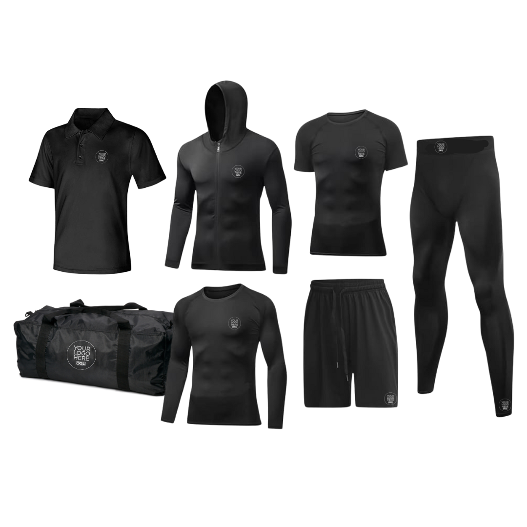 Choose from a variety of premium pieces including tanks, polos, dri-fit tees, windbreakers, hoodies, and even branded workout sets.